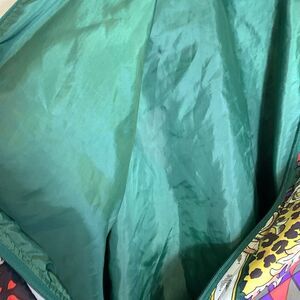 Vintage 80s Marcella Green Animal Scroll Print Washable Silk Track Jacket Size M