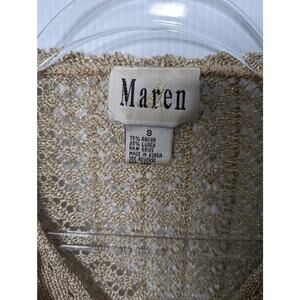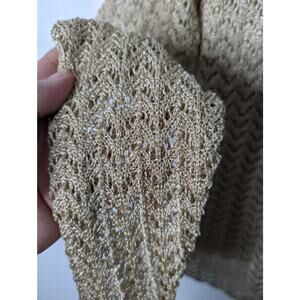 Vintage 80's Maren Gold Metallic Crochet V Neck Cardigan with Faux Layer
