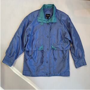 Vintage 80s Mariel Windbreaker Jacket Womens Medium Raincoat Lavender Turquoise