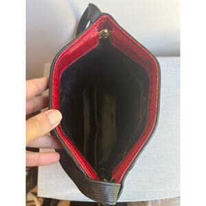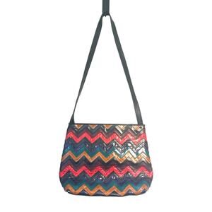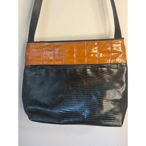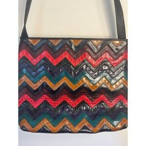 Vintage 80s Medium Sharif Chevron Leather Zigzag Shoulder Bag Reptile Embossed