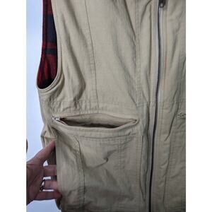 Vintage 80's Men's St Johns Bay Tan Utility Vest Buffalo Plaid Lining