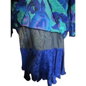 Vintage 80s Metallic Floral Party Dress Blue Green Plaza South Size 8
