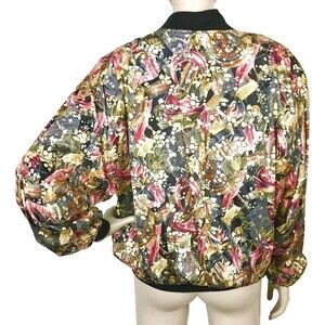 Vintage Pacific I.D. multi-colored metallic gold abstract bomber jacket, has built-in shoulder pads, pockets, marked One Size Fits All, fits size small medium large XL depending on your measurements and desired fit, please refer to measurements for accurate fit. NWT NEW