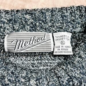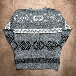 Vintage 80s Method Geometric Print Knit Sweater Blue Gray Diamond Men's XL Retro