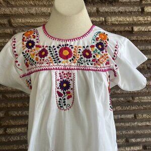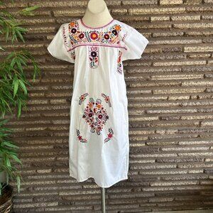 Vintage 80s Mexican Handmade Embroidered Peasant Dress
