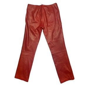 Vintage 80s Michael Hoban Red Leather Straight Pull-On Pants Size 4 High Rise
