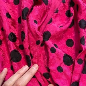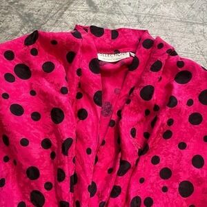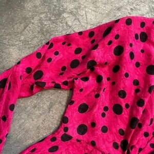 Vintage 80s Collections by Michelle Stuart Silk Pink Black Polka Dot Peplum Blouse Shirt 6