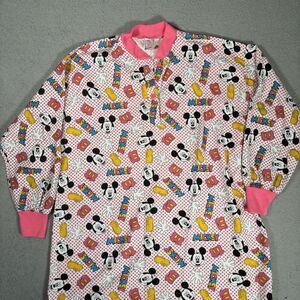 Vintage 80s Mickey Mouse Disney Unlimited Flannel Sleep Gown Shirt Long Sleeve
