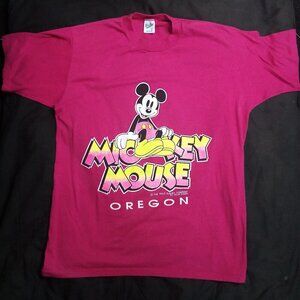 Vintage 80s Mickey Mouse Oregon Neon T-Shirt - Made in USA - Size Large, Measures p2p=21" Length=27" - Excellent Condition, No Flaws
