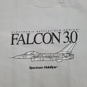 Own a vintage 80s military jet shirt in white, size large. Perfect for aviation enthusiasts and retro style fans!