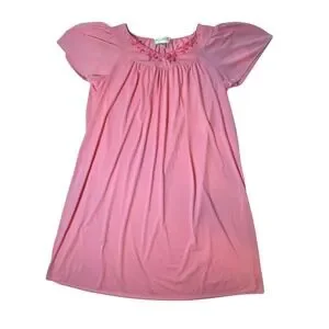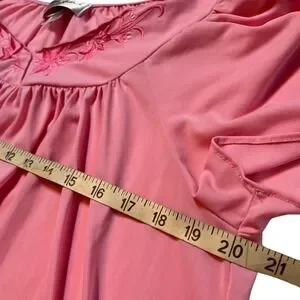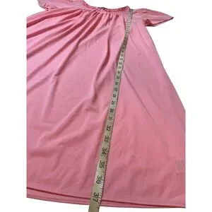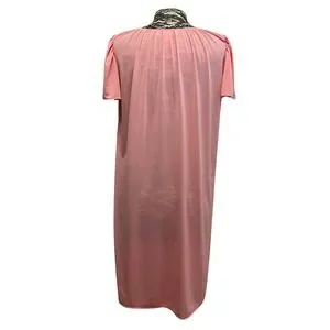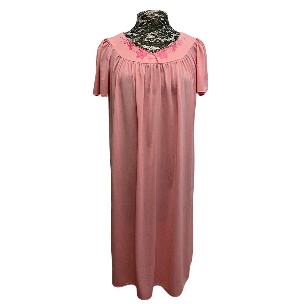 Vintage 80s Miss Elaine Classic Nightgown Sleepwear Pink Nylon Embroidered S