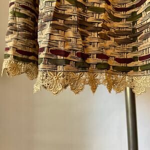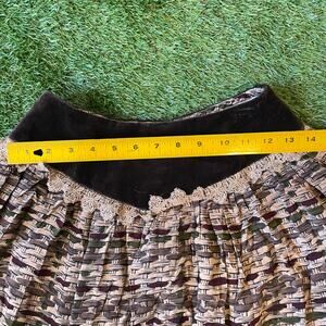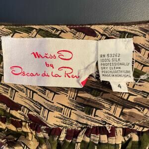 Vintage Miss O Oscar De La Renta Silk Basket Weave Print Skirt with Velvet Yoke