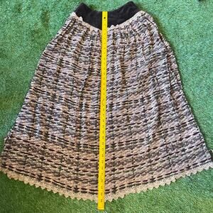 Vintage 80s Miss O Oscar De La Renta Silk Basket Weave Skirt with Velvet Yoke