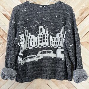 Vintage 80s Mod Cityscape Acrylic Blend Crewneck Sweater