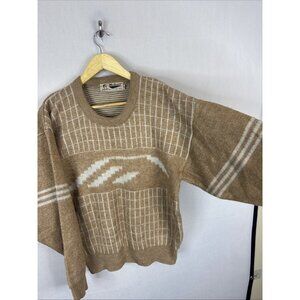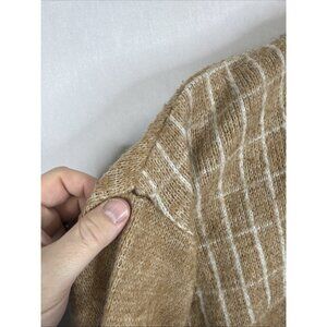 Vintage 80s Mohair Blend Sweater Tan White Grid Pattern Made In Korea Size 36