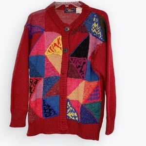 Vintage 80s Mohair Wool Plaid Cardigan Sweater