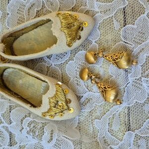 Vintage 80’s Monet Geometric Gold Pink Cabochon Clip-On Earrings