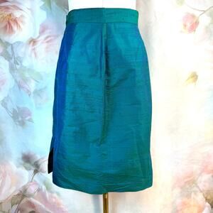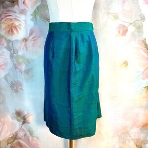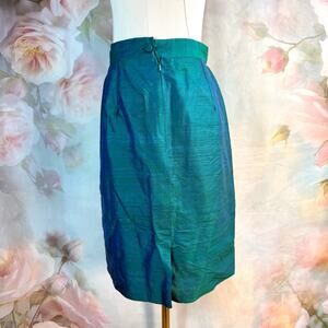 Vintage 80s Monsoon Silk Twilight Range Green Blue Irridescent Pencil Skirt