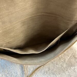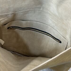 Thin and classy profile, with silver tipped envelope style flap. Soft inner pouch with one small zippered pouch on side. Strap is removeable and converts to clutch.