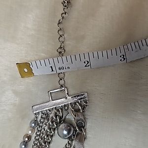Vintage 80's Multi-Strand Pearl Ribbon Choker Necklace Costume Jewelry Silver