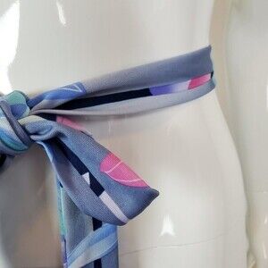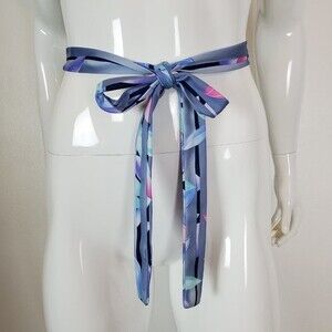 Vintage 80's blue, purple, pink, and green cloth belt. Could also be used as a neckerchief, necktie, etc.