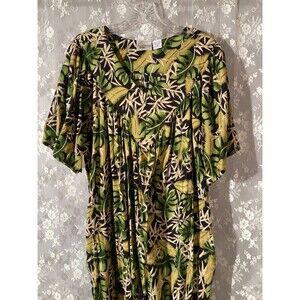 Vintage 80s Muumuu 1980s Hawaiian Tropical Retro House Dress Boho Maxi Size 1X
