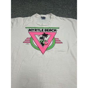 Vintage 80s Myrtle Beach White Single Stich Graphic T-Shirt Boxy Size Large.