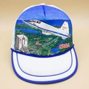 Preowned, Vintage 80s NASA Kennedy Space Center Kandi Tops Foam front Mesh back with some wear but in very good condition for its age. See ALL photos for quality and condition. Will be shipped in a box.