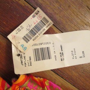 Discounts by bundling. Now this is hard to find... 80s brilliant colors and Aztec pattern with metallic gold inserts -support and new with the tags from the 80s! Right out of a Three's company Suzanne Summers shoot! Groovy Retro liquid satin love. Can'f find this often! Wild child vibe and can easily be worn with a skirt over top. Very quality (8x4x1;8oz)
