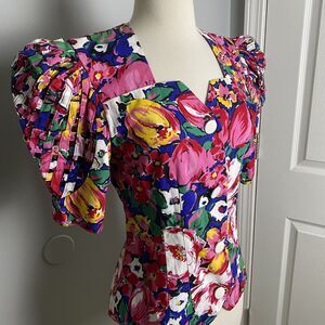 #vintage80s #puffsleeves #statementblouse #floralblouse #madeinusa