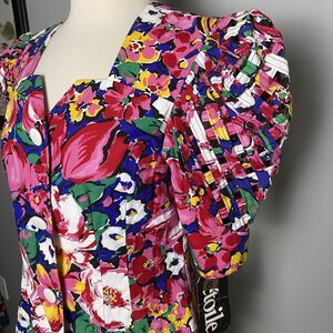 Vintage 80s Etoile puff sleeve floral blouse - NWT - XS