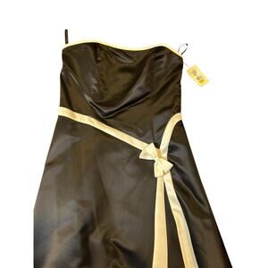 NWT Jessica McClintock Gunne Sax Ball Gown Maxi Dress Black Satin White Bow Sash 9