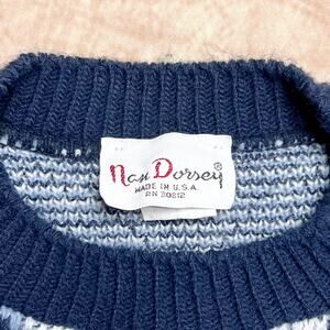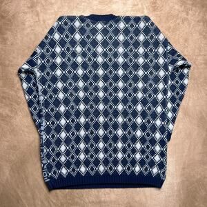 Vintage 80s Nan Dorsey Argyle Diamond Geometric Knit Sweater Blue Long Sleeve