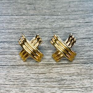 Vintage 80’s Napier Gold Tone Cross X Earrings Surgical Steel Post