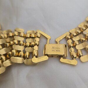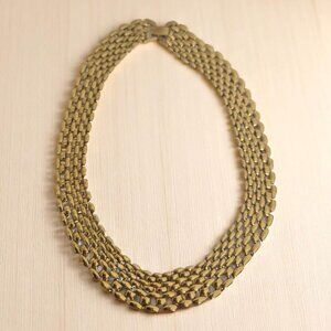 Vintage 80s Napier signed goldtone mesh collar necklace with panther links. Seven rows. Approximately 8".