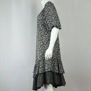 vtg, 1980s, cottagecore, black & white, flowers, ruffles, alternative, retro, indie, boho, Hawaiian, travel, beach, vacation, relaxed fit, flowy, mixed pattern, maximalist, neutral, black & white, romantic, bohemian, statement piece, spring, summer, feminine, whimsygoth, whimsigoth, prairie