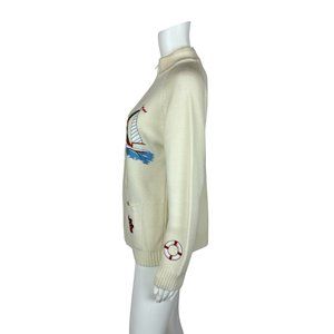 Vintage 80s Nautical Sweater Embroidered Sailboat Zip Up Cardigan