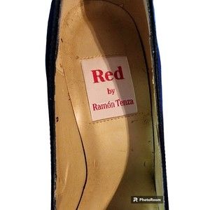 Vintage 80's Navy Pumps by Ramon Tenza RED Made in Spain Sz 8 Gold Cut Out Heel