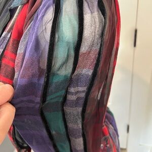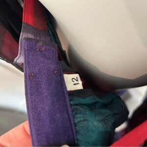 Chic set with paisley and plaid design. Features rich red, deep purple, and lush green hues.