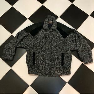 Vintage 80s New York Girl Boucle Bomber Jacket Black Speckled Coat Shoulderpads