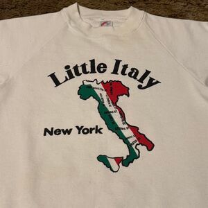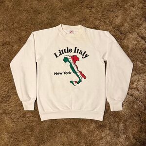 Vintage 80s New York Little Italy Crewneck Sweatshirt White Small