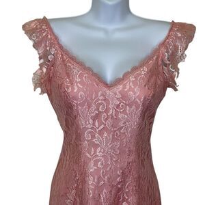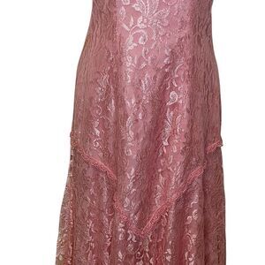 Vintage 80’s Newleaf By Samir Cocktail Prom Lace Dress Pink with Ivory Trim 5/6