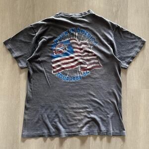 Vintage 80s Night Ranger Midnight Mad Rock In America Tour 1983-84 Hanes Beefy Size Large (measurements in photos) Made in USA Single Stitch in a beautiful faded black color, has some bleach stains and a couple small holes, this all tells the age and story of the tee. Very few listed and none with wear like this one, gotta love it!