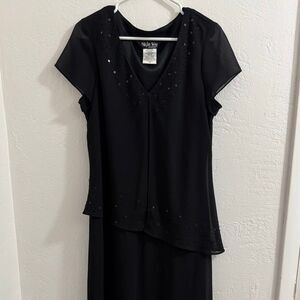 Vintage 80s Night Way Collections Black Chiffon Beaded Evening Maxi Dress 12