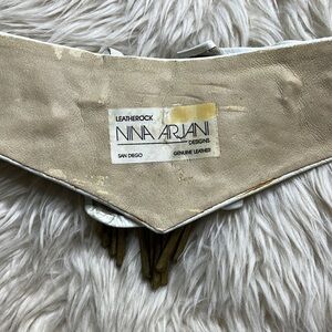 Vintage 80s Nina Arjani white leather medium waist belt heavy brass metal