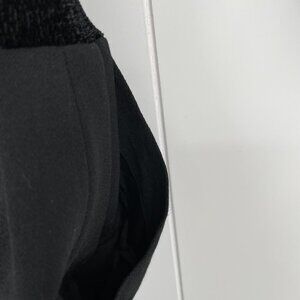 Details-This is a vintage black sheath dress by Nina Ricci from the late 80s to early 90s. Contrasting design that creates a beautiful shape. Square neckline. Hidden inner buttons on the sleeve ends that I believe were meant to be seen (cuffed). Small back bottom slit. Hidden back zip.