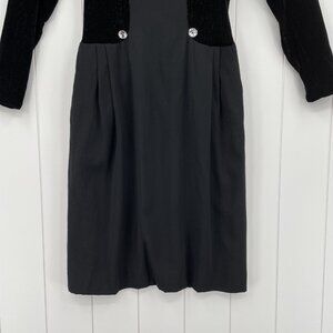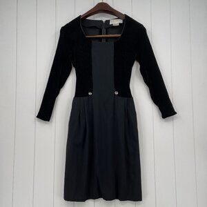Vintage 80s Nina Ricci Black Sheath Long Sleeve Dress Square Neckline | M 40
