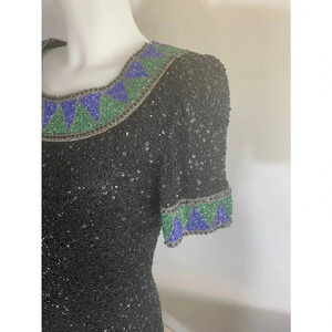 Vintage 80’s Niteline by Della Roufogali Beaded Sequin Black Cocktail Dress 0170