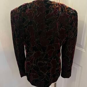 Vintage 80's Norton McNaughton Maroon Leaf Print Velvet Blazer Size 8