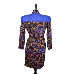 Vintage 80s OS International power dress purple orange black paisley shoulder pads